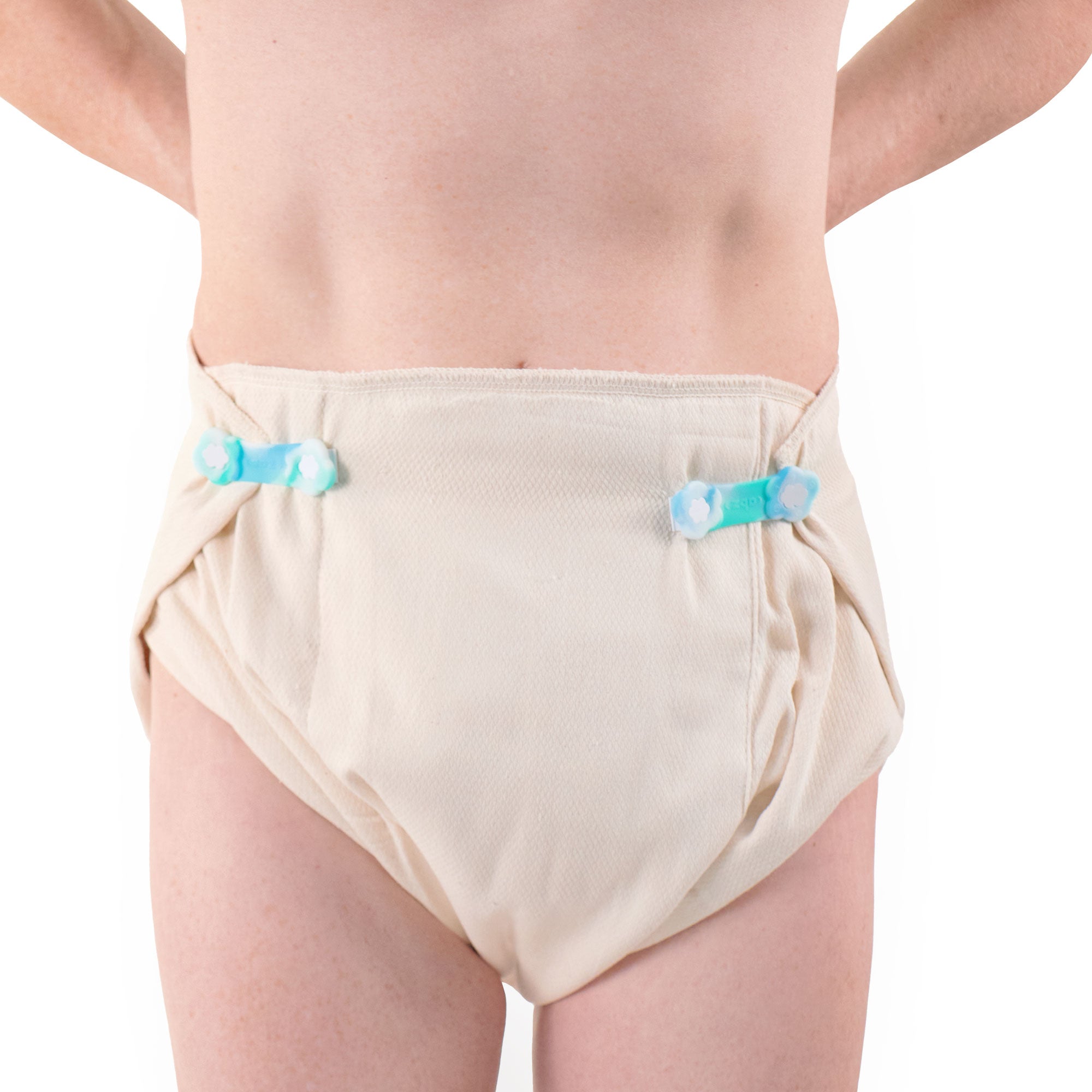 ABZ fasteners are a convenient and safe way to fasten adult cloth diapers. As easy as ABZ. They are suitable for all sizes of diapers from preemie to adult. Our leading-edge design includes a comfort contour edge for fastening and rounded edges on the back for the safest and most comfortable fit.