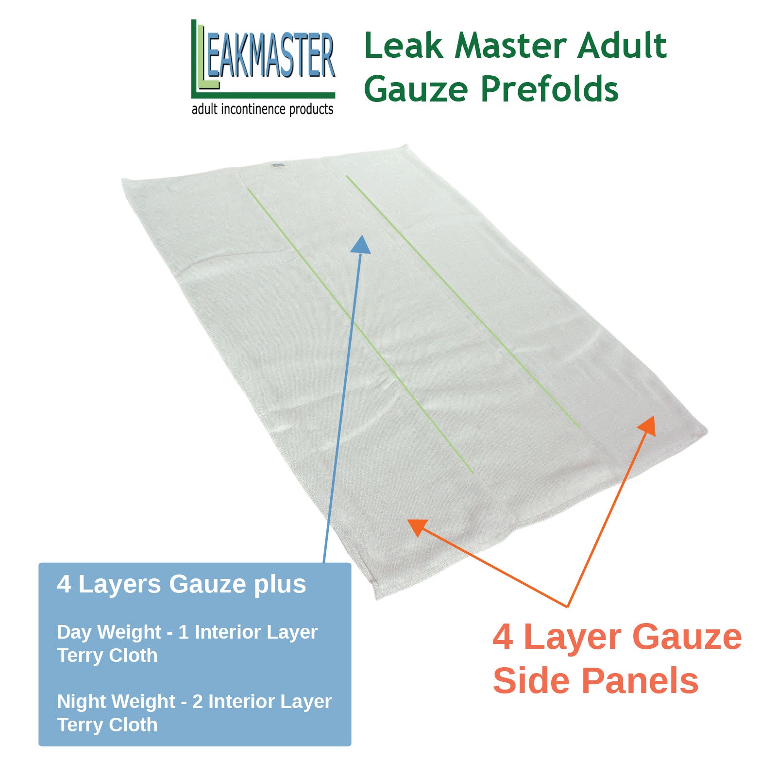 LeakMaster Adult Prefold Cloth Diapers - Gauze