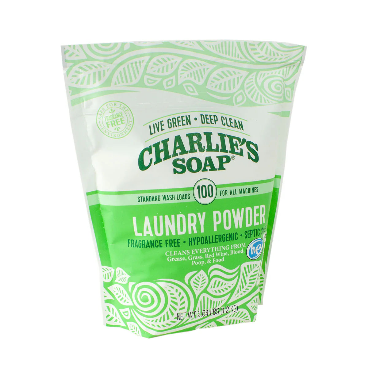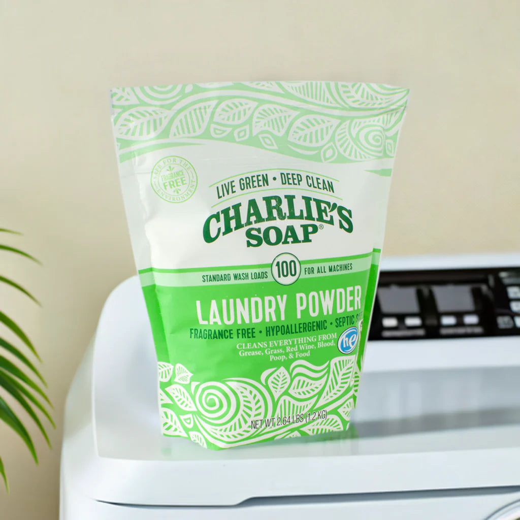 Charlie's Laundry Powder does 100 full size washloads for just pennies per load. Charlie's Soap rinses completely leaving no residue on your clothes or in your washer. Perfect for babies and those with sensitive skin. Charlie's Soap has no perfumes, no fragrances, no chemical brighteners. This means your diapers won't dry stiff and brittle. HE/front loader compatable. Clean fresh clothing and no oder buildup in your washer. The post-consumer recycled jar is good for the environment and convenient to use.