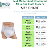 To ensure proper fit please take measurements and check size chart before ordering. Note All-In-One sizing is different than prefold and contoured.