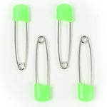 These colorful stainless steel diaper pins feature locking plastic heads and now come in eleven delightful colors. They work equally well fastening adult or youth cloth diapers. Set of 4 pins only $1.00