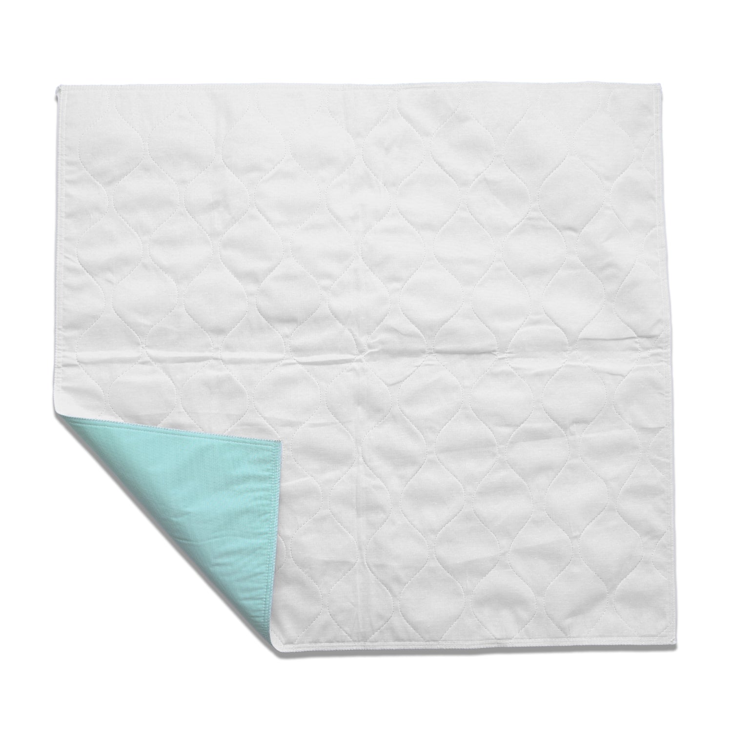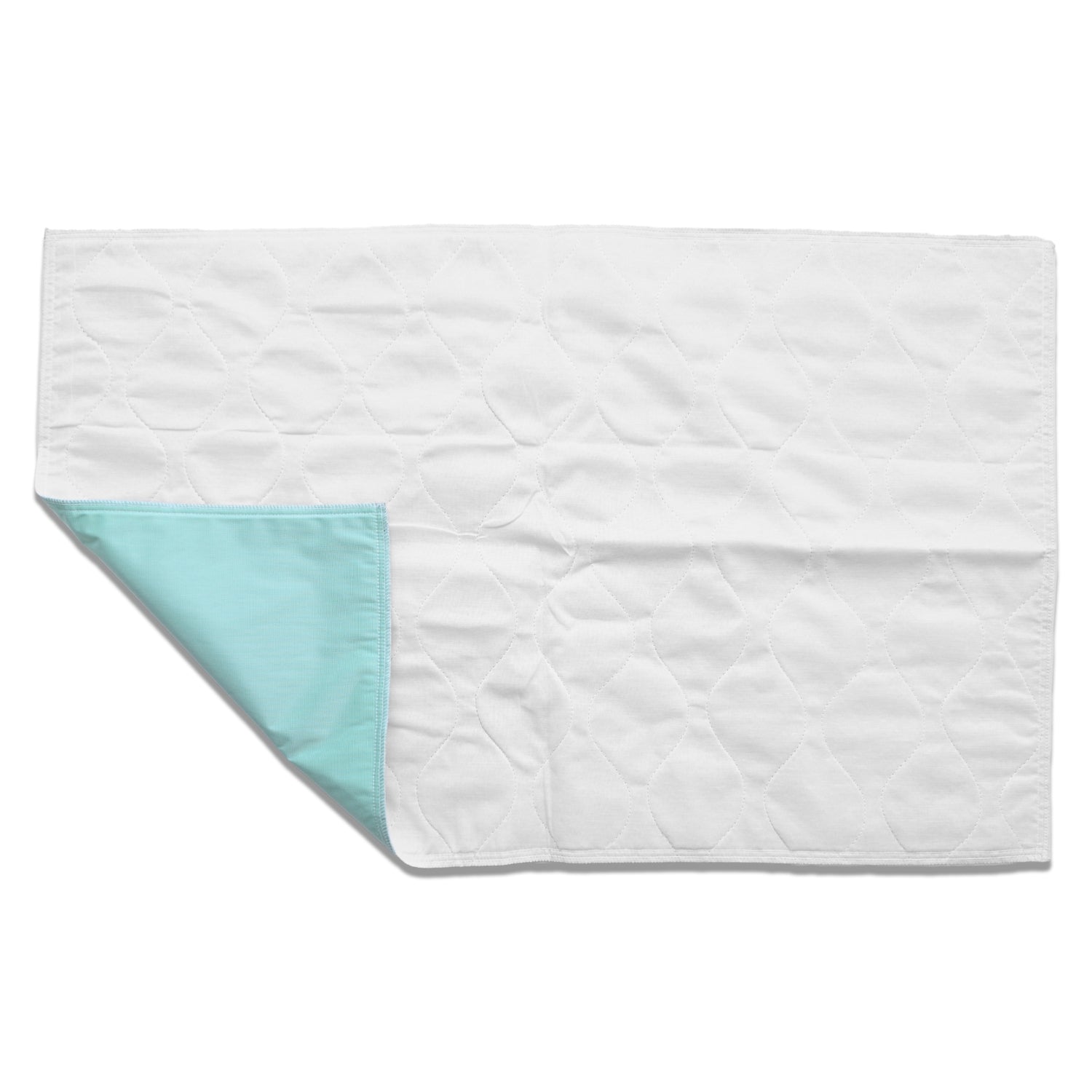 Reusable Underpads are designed to trap and absorb liquids. The quilted design and three-layer construction will not slip, ball or shift. The three layers include stay-dry top layer with an antibacterial, anti-fungal finish. The absorbent fill is a poly/rayon soaker material, and the backing is a PVC/Polyester with a waterproof inside and an outside that provides a non-slip surface. The waterproof binding prevents moisture from wicking over the edge. Quilted construction means that the pad maintains its shape washing after washing. One pad per package.