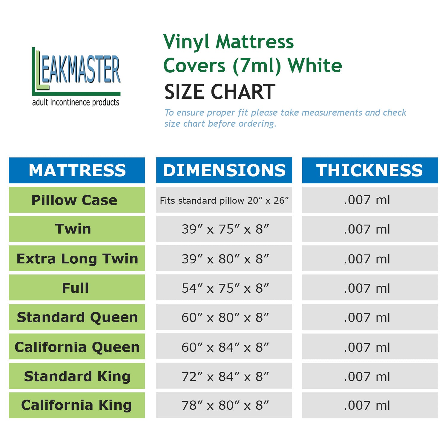 LeakMaster Vinyl Mattress Covers (7ml) White